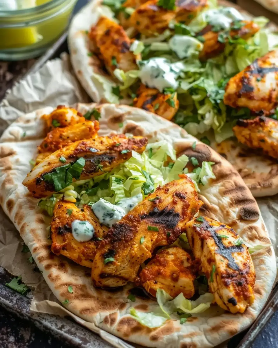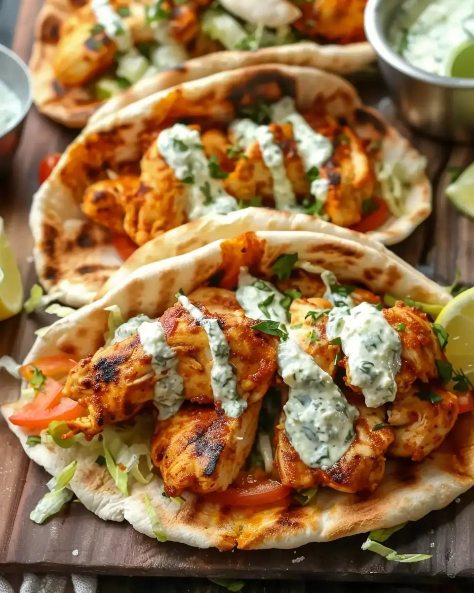 Now it’s time to assemble! Load each warm pita with a generous scoop of roasted chicken, a handful of herby ranch slaw, and if you’re feeling adventurous, add some sliced tomato or avocado. Finish off with a drizzle of additional ranch dressing for that extra flair.