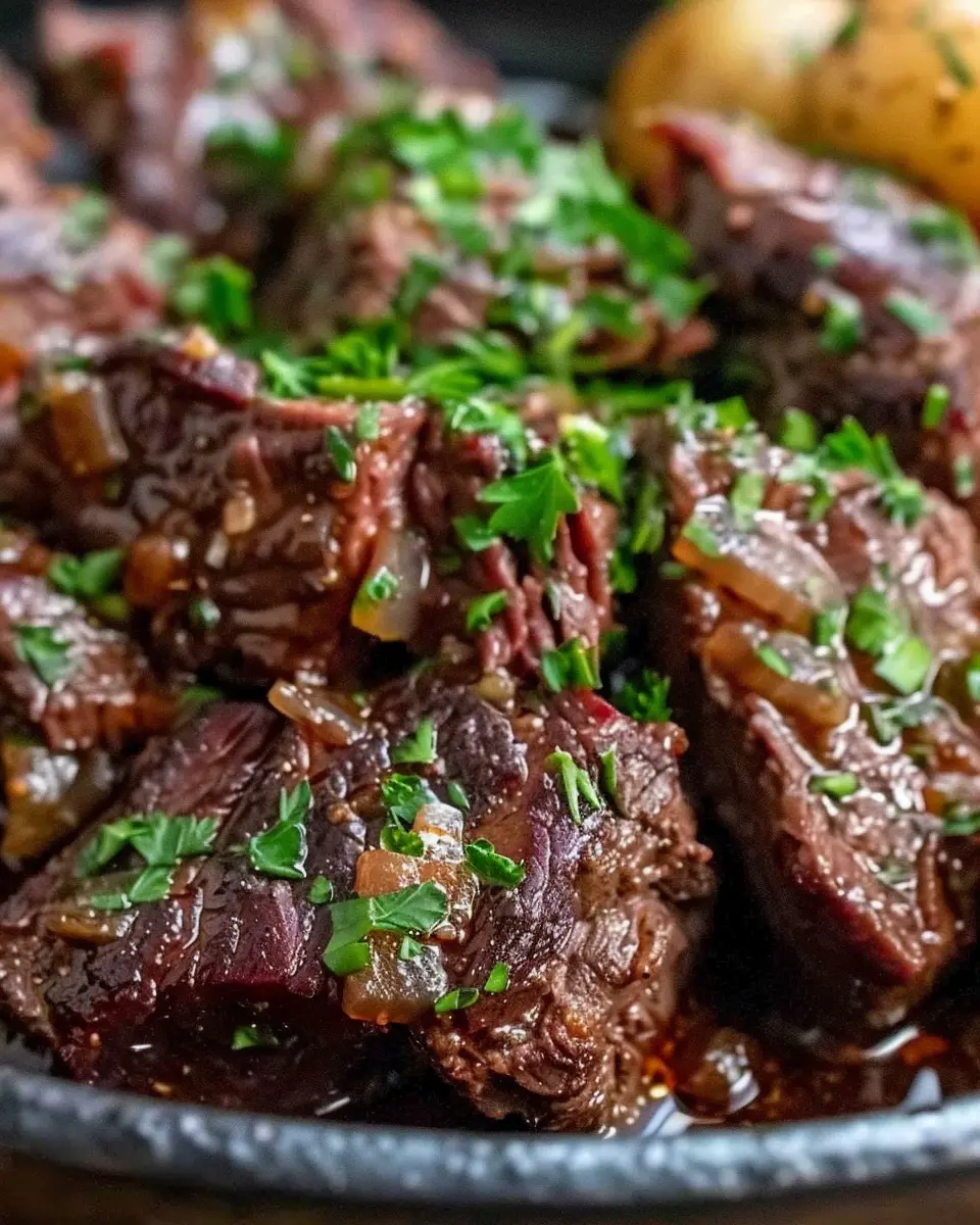 - Stovetop Method: Sear the beef in a large pot, then add the garlic butter and other ingredients. Simmer on low heat, covered, for about 2-2.5 hours.