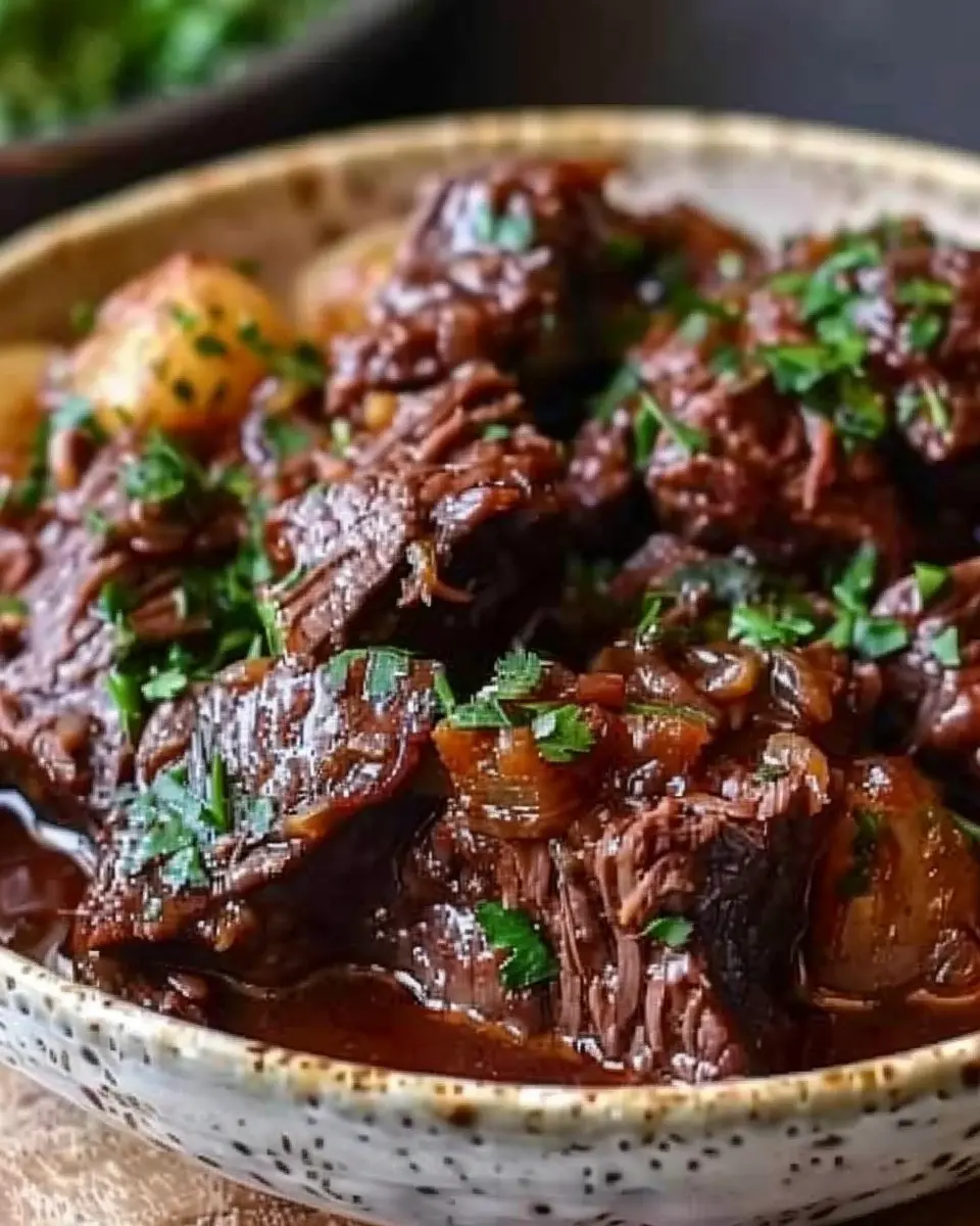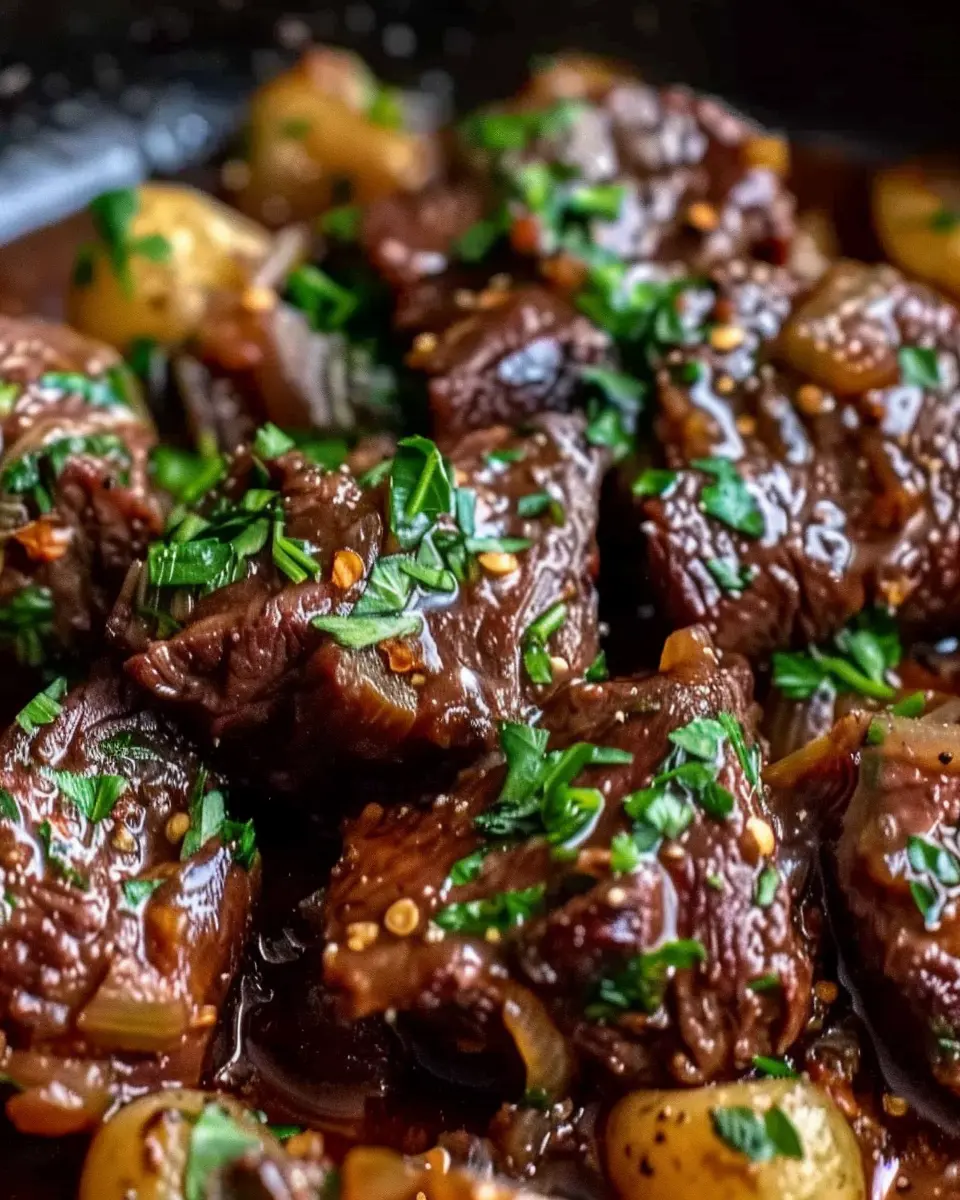Slow Cooker Garlic Butter Beef is a tender and flavorful dish that combines the richness of garlic and butter.