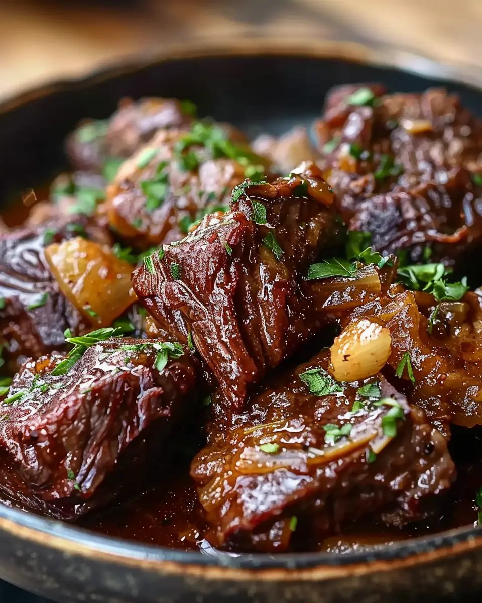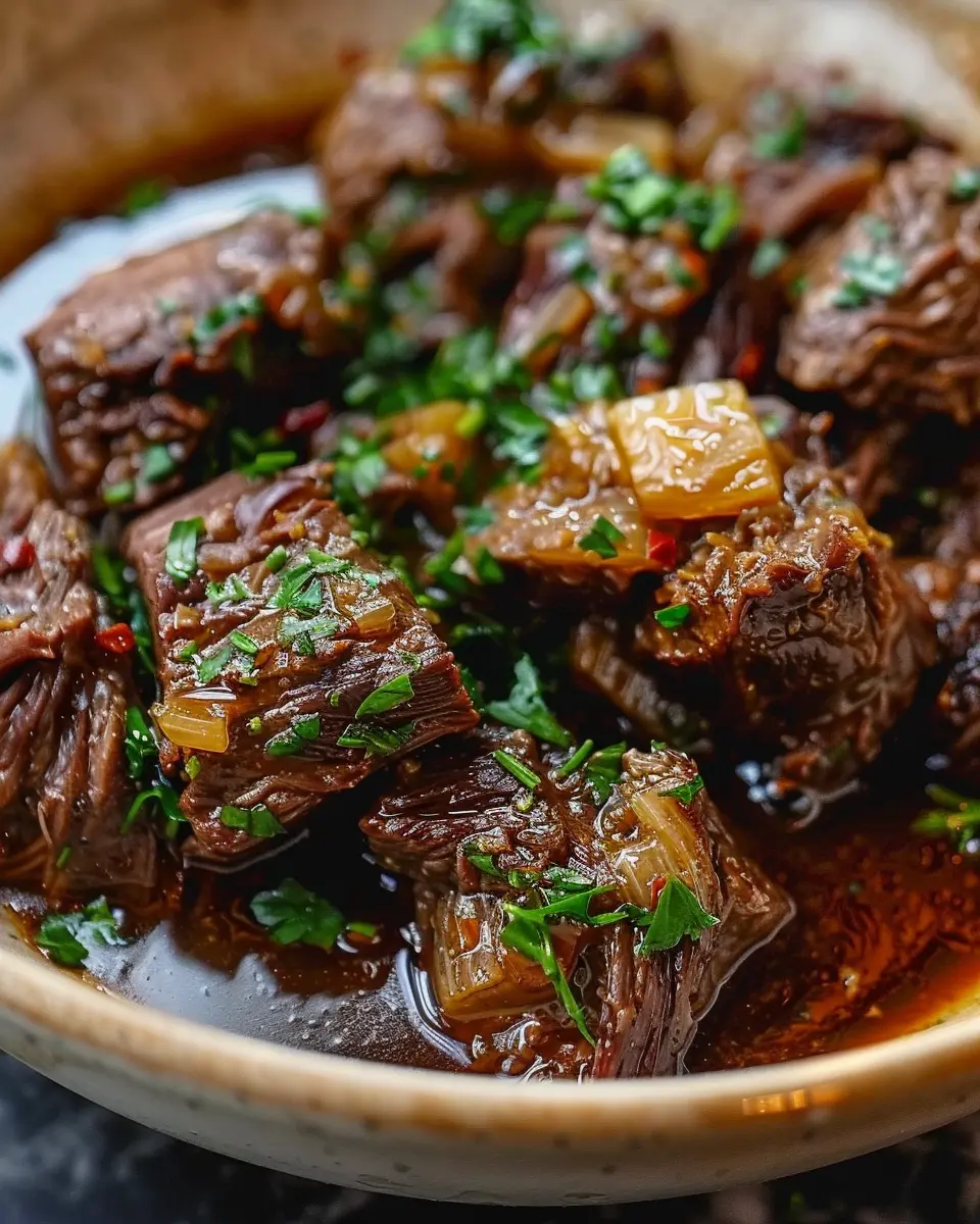 A delicious slow-cooked beef recipe with garlic and butter for a comforting meal.