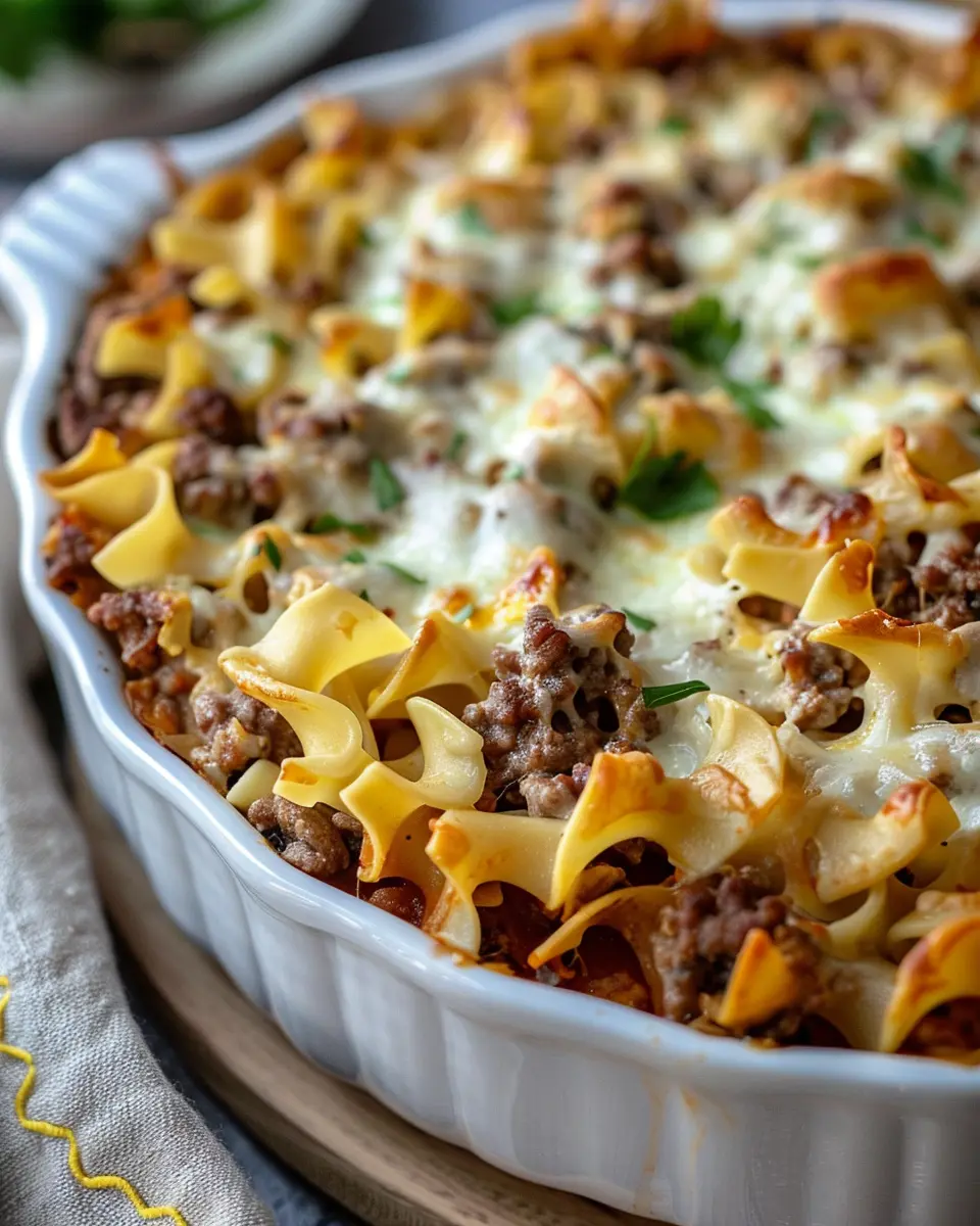 PrintSour Cream Beef Noodle Casserole: Easy, Comforting Delights at Home