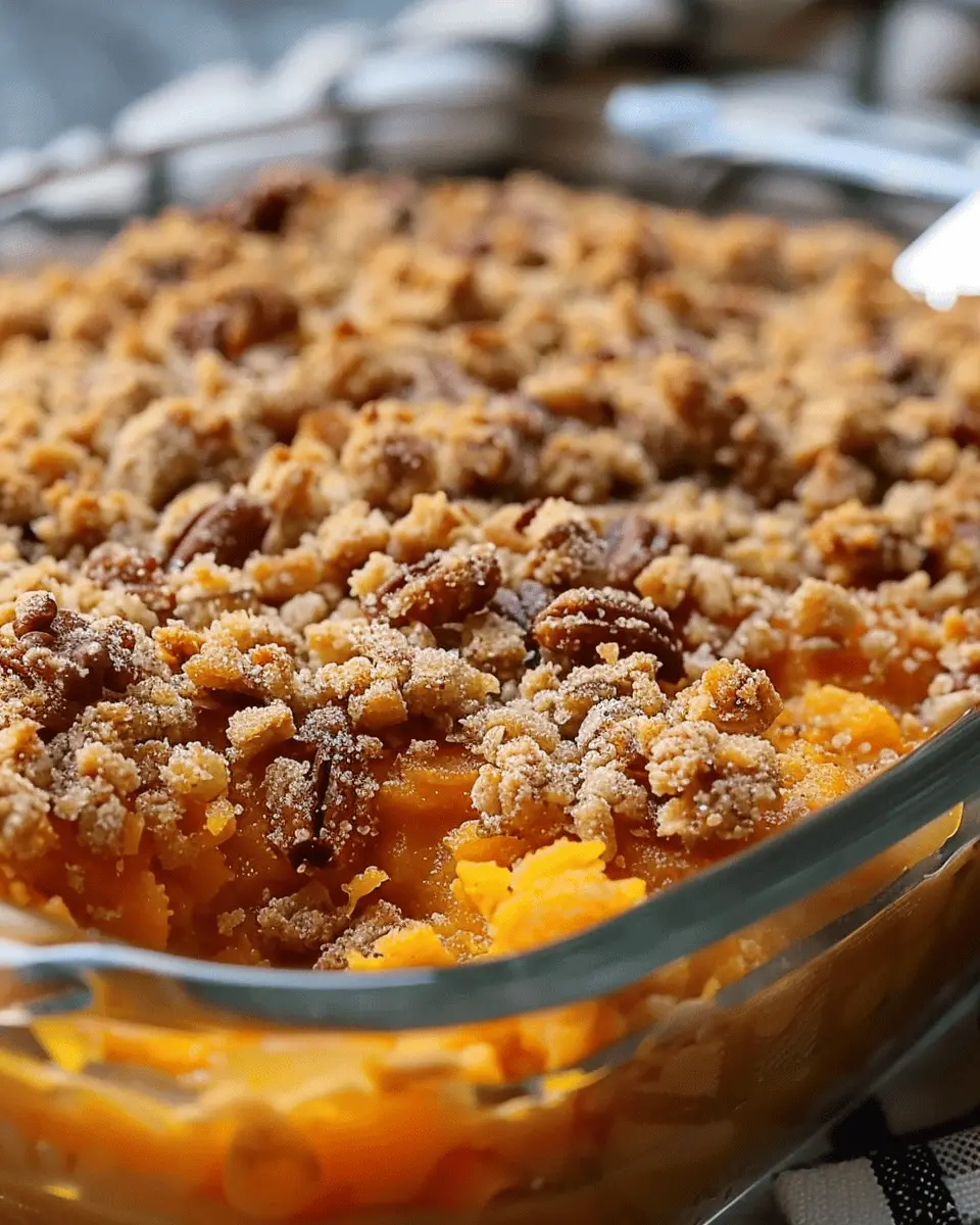 A delightful casserole made with sweet potatoes and a crunchy topping, perfect for family gatherings.