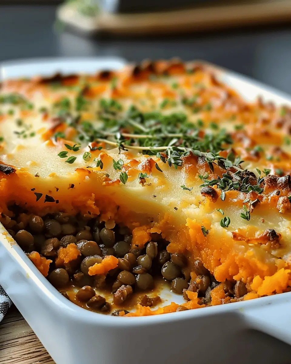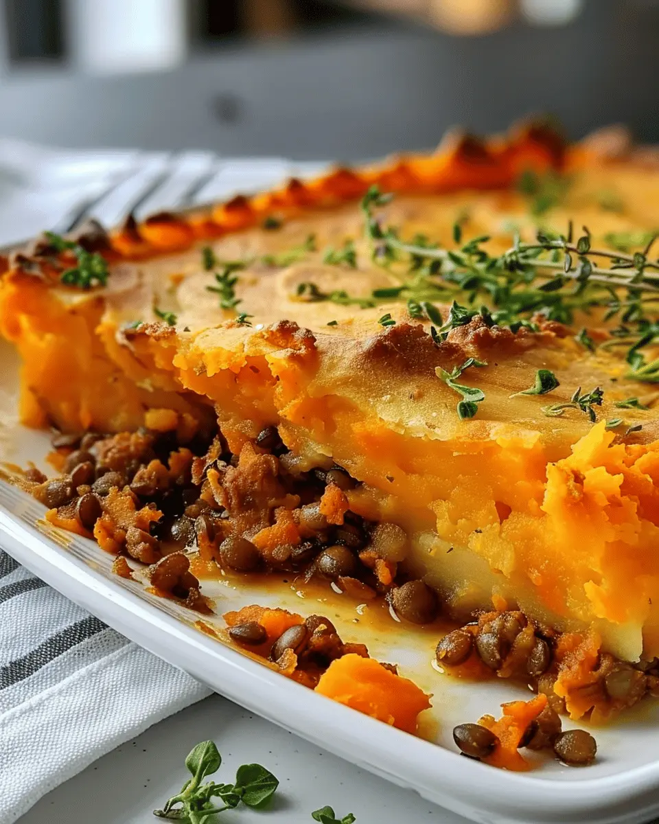 Wrapping up the recipe, the Sweet Potato & Lentil Shepherd’s Pie is not just a feast for the eyes but also a nutrient powerhouse. Packed with protein-rich lentils and the vitamins of sweet potatoes, this dish is both satisfying and wholesome. The flavor combinations—savory lentils, aromatic herbs, and creamy sweet potato—create a delightful harmony on your plate.