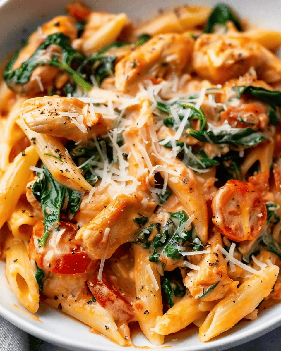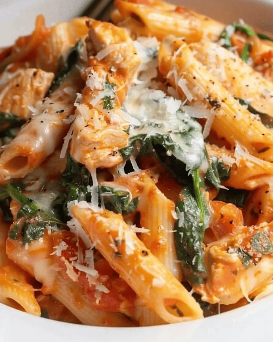 PrintTomato Spinach Chicken Pasta: Easy Recipe for Busy Weeknights