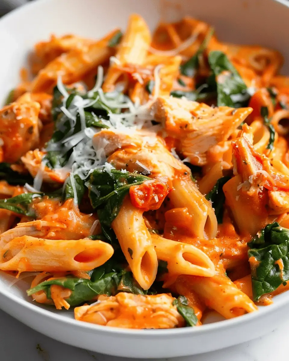 Moreover, Tomato Spinach Chicken Pasta offers versatile leftovers. Whether you’re savoring it the next day for lunch or using it as a base to create a different dish, it will keep you excited about your meals throughout the week.