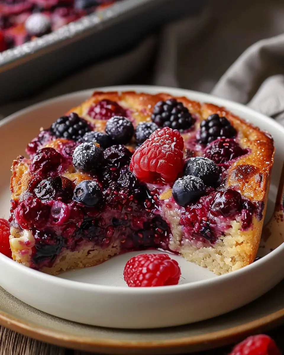 Once your triple berry protein bake is out of the oven, be patient! Allow it to cool in the baking dish for about 10 minutes. This cooling time helps the flavors meld and makes slicing easier.