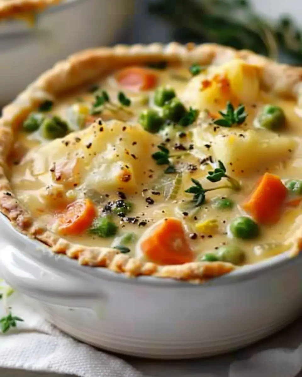 A deliciously creamy soup that captures the essence of a classic veggie pot pie.