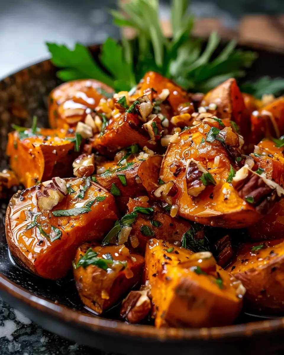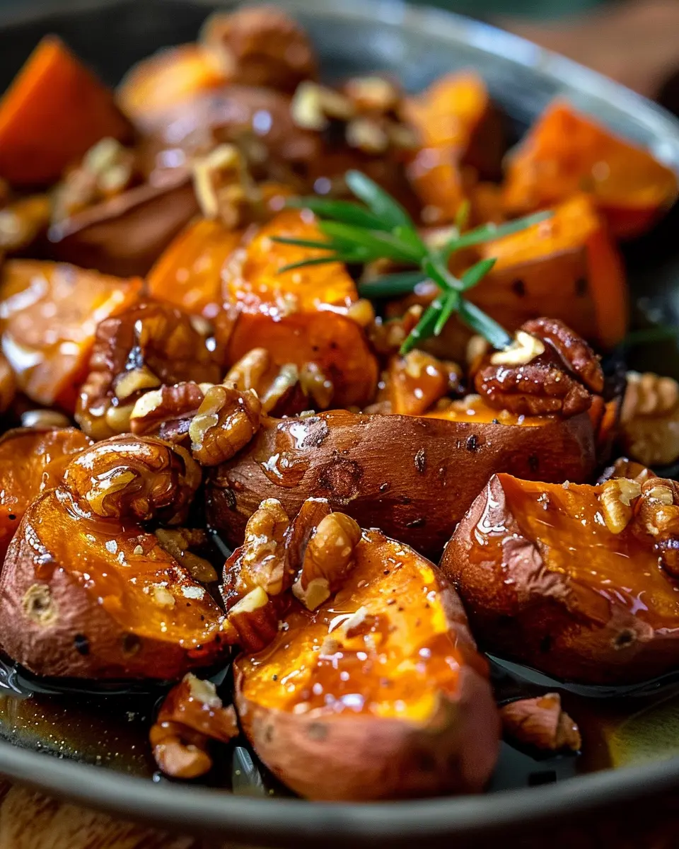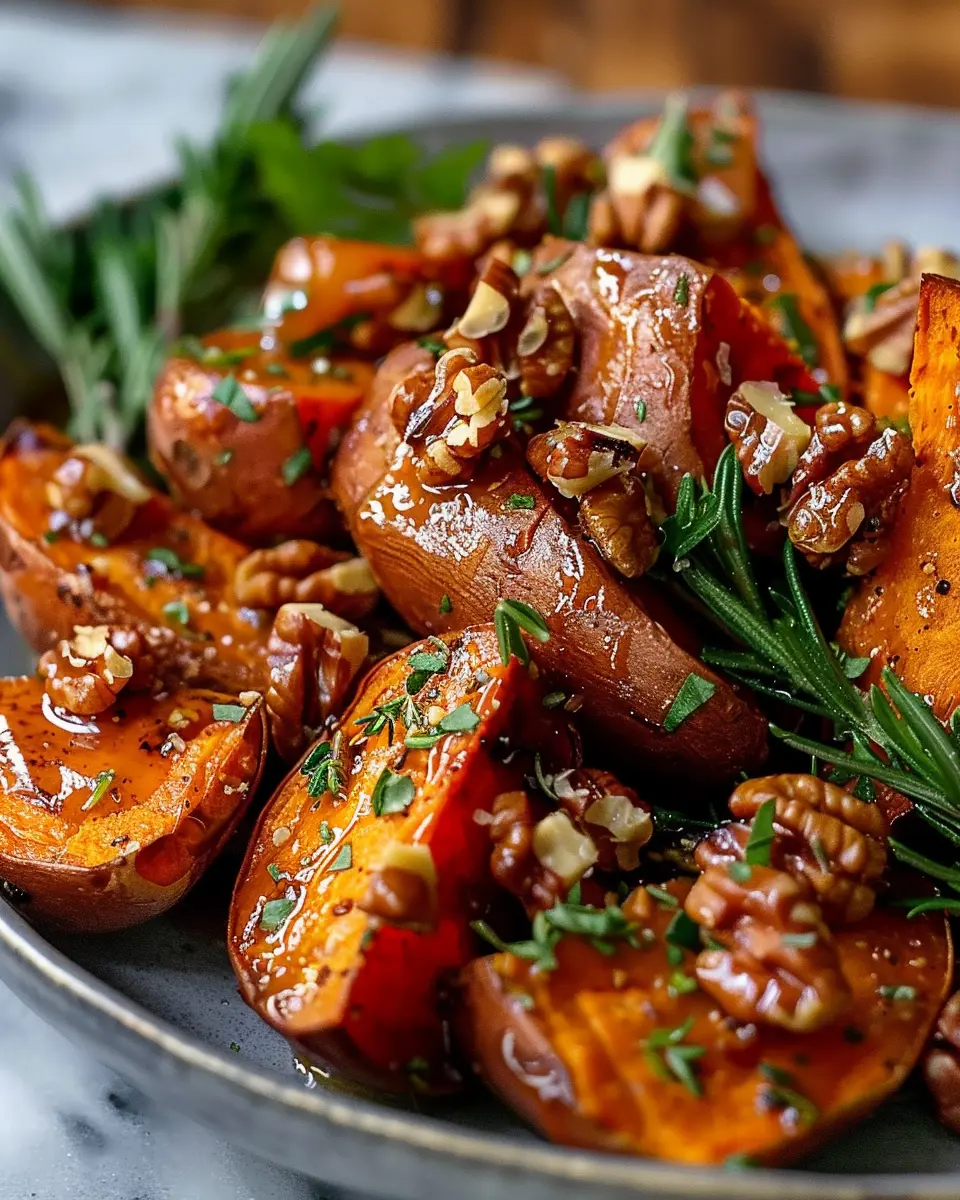 Enjoy the sweet and nutty flavor of Walnut Maple Roasted Sweet Potatoes, a delightful comfort food perfect for any occasion.